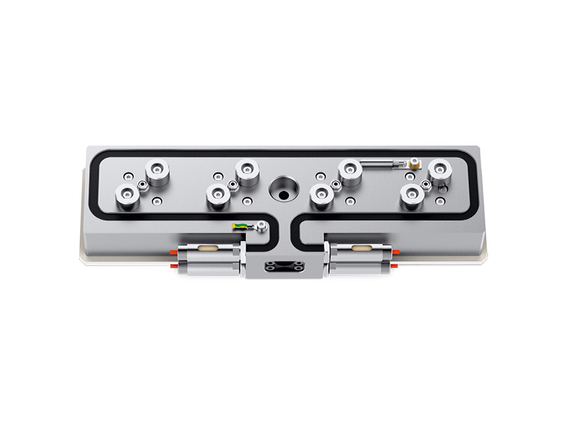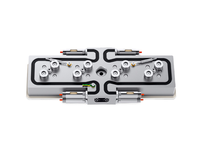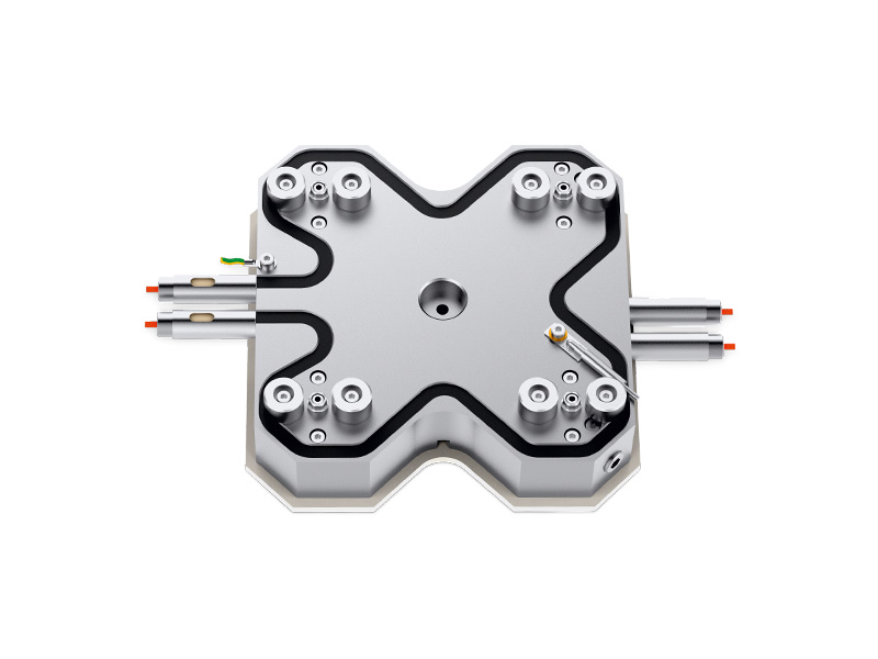 根据所需应用,可为君特针阀式浇口系统选择多种不同的热流道分流板。目前的分流板系列包括直列分流板、十字和星形分流板以及 H 型和 T 型分流板。针阀式热嘴的可变定位使间距可自由选择,从而实现个性化模具设计。其中阀针驱动器位于模具内的分流模块后方。